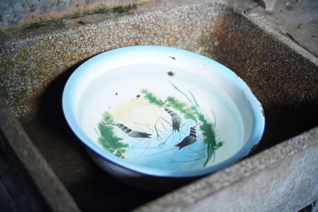 我尝试以他者视角来分析2张网上所言“一般般”的照片。一张,水斗里有一个搪瓷面盆,面盆中有三只草虾;另一张照片,一名男子探身望着旋转而下的楼梯。我揣摩,网友质疑前一张照片没有意思,主题在哪里?拍三只虾想表达什么?