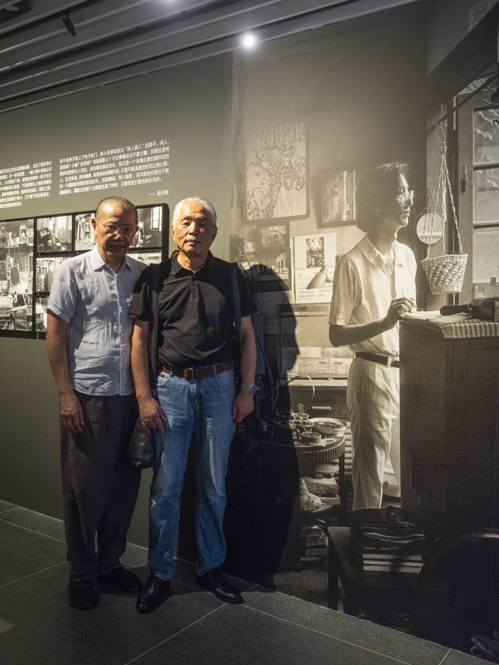 2024年8月28日,乌镇,陆元敏(左)与陈丹青在《上海赋》的展览上。许海峰 摄影