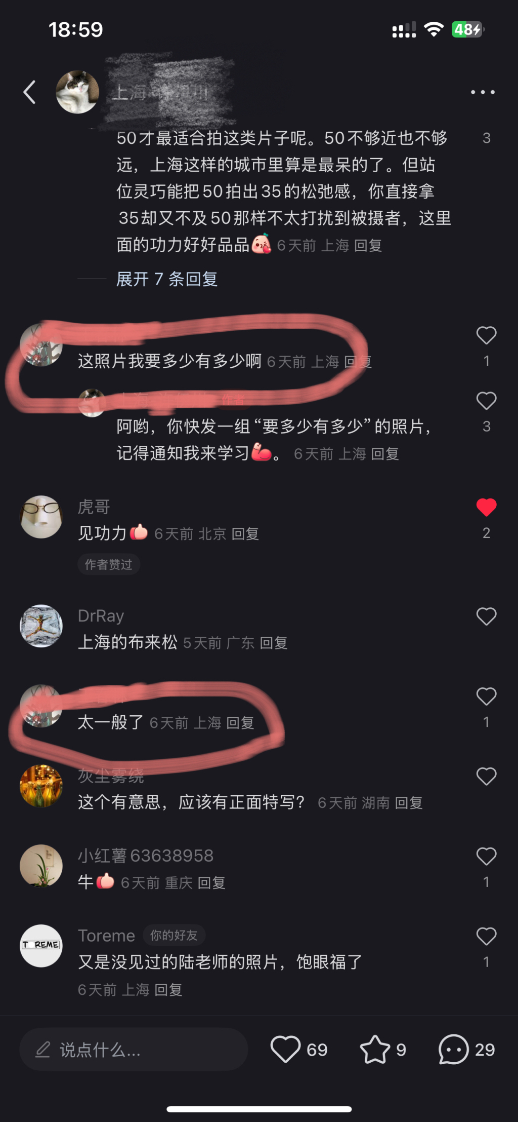 他们是幸运的,因为相机为他们提供了一个表达与逃逸情绪的出口;但他们也可能是不幸的——当摄影仅成为对现实的粉饰,他们或许就错过了更深刻、更真实的观看和感受。在社交媒体上,他们有时会以坚定的语气,甚至略带嘲讽地否定陆元敏这类风格的作品,认为其“不够美” ,提醒:“这是小红书,天王老子来了都还得再练练”。我想,陆老师若听见,大概也只会温和一笑。他本就不是追求刚猛一路的创作者,他向往的是从容自在,于日常中见发现生活的真味。