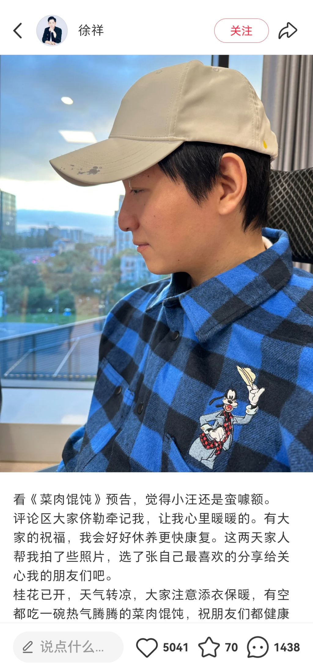 知名沪语博主徐祥曾因身体状况引发网友关注。10月29日,徐祥在社交平台发文更新状态,“看《菜肉馄饨》预告,觉得小汪还是蛮噱额。评论区大家侪勒牵记我,让我心里暖暖的。有大家的祝福,我会好好休养更快康复。”记者注意到,徐祥参演了即将上映的沪语电影《菜肉馄饨》。
