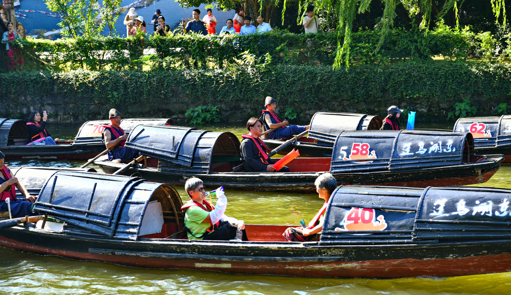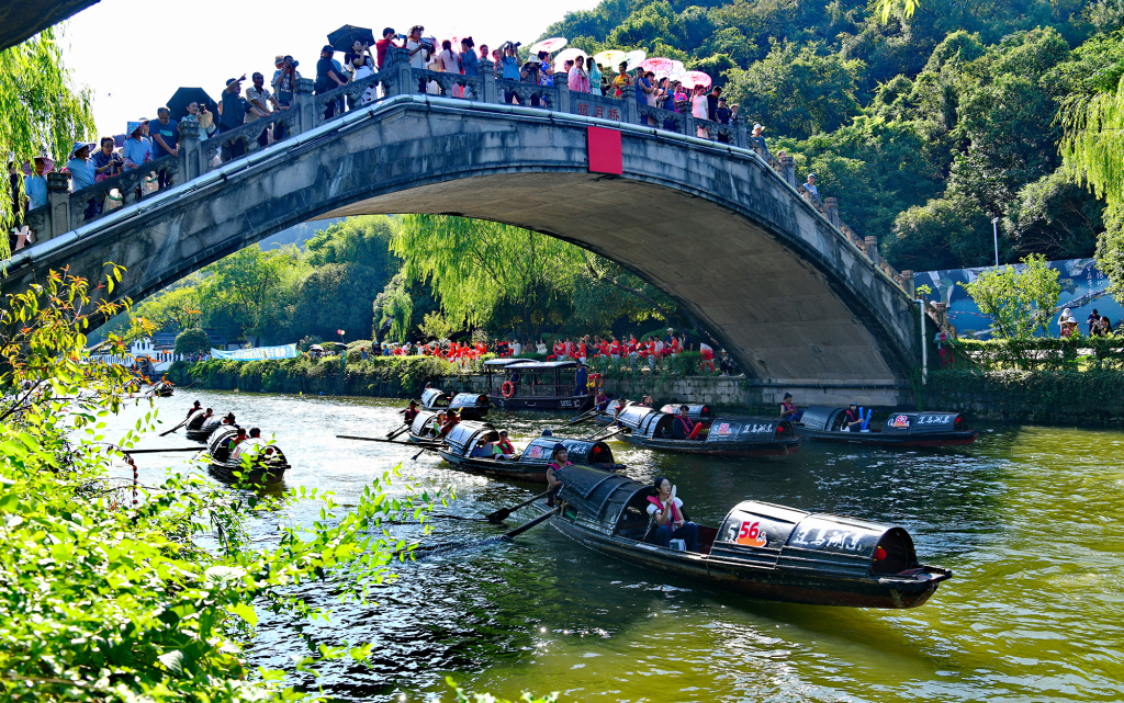 9月28日,浙江绍兴,乌篷船马拉松邀请赛比赛现场。