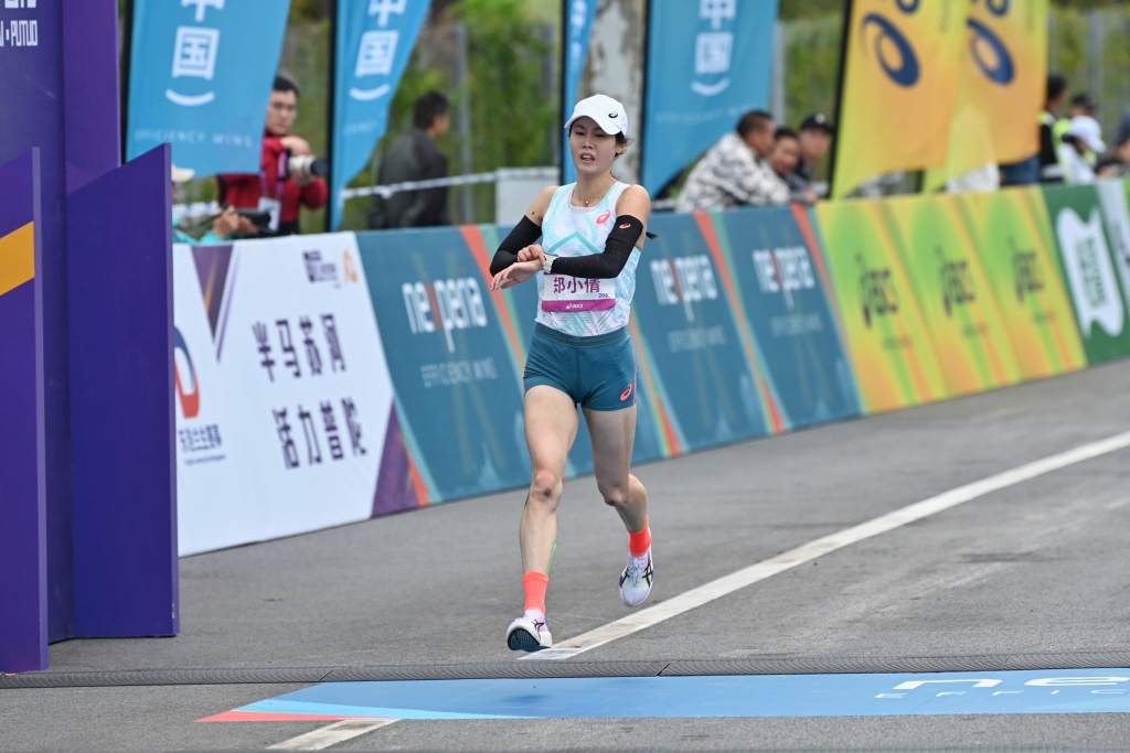 郑小倩在赛事中刷新个人PB,成为国内女子组第一名。记者 朱伟辉 摄