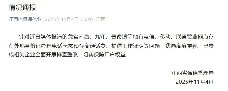 目前,江西省通信管理局发布情况通报称,已责成相关企业全面开展排查整改,切实保障用户权益。打击诈骗和服务群众并不是“二选一”的对立项,“反诈”也绝不是层层加码的借口。真正该“加码”的,是一些运营商的服务意识,和精准打击诈骗的有效行动。